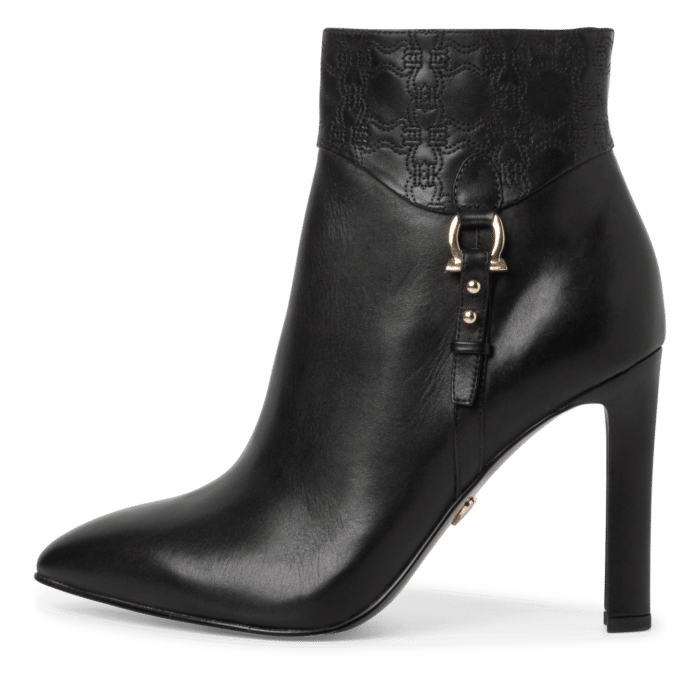 Botine negre cu toc inalt si accesoriu auriu Tamaris