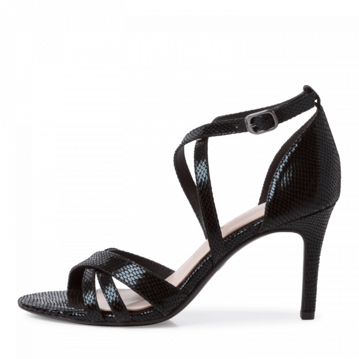 Sandale negre din piele naturala cu barete si toc inalt Tamaris